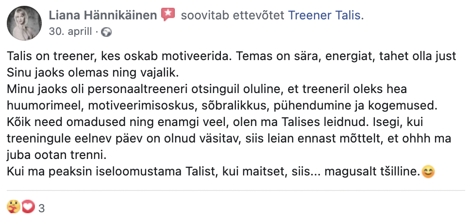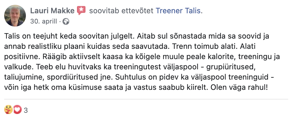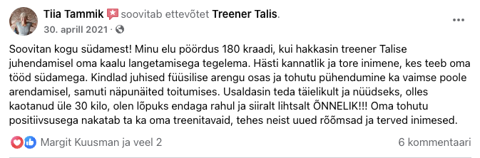 Tere! Mina olen Talis, sinu isiklik mentor ja kaalulangetusprogrammide Rannaralli, Suvevormel-1 ja Salesaan looja. Ma olen seisukohal, et informeerimist on juba niigi palju, nüüd on vaja hakata aktiveerima!